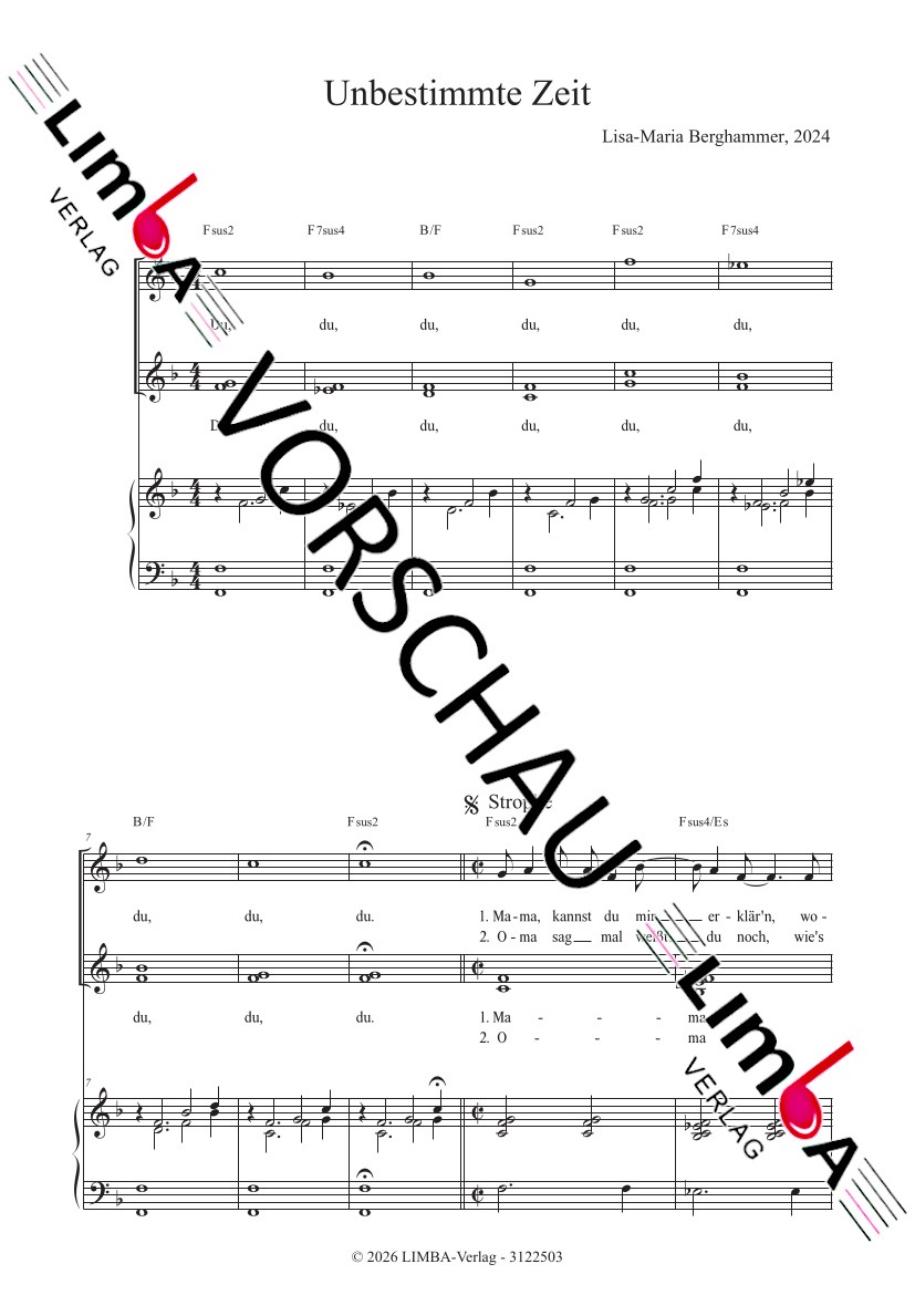 Besetzung: 3-stimmiger Kinder- oder Jugendchor, Klavier, Xylophone